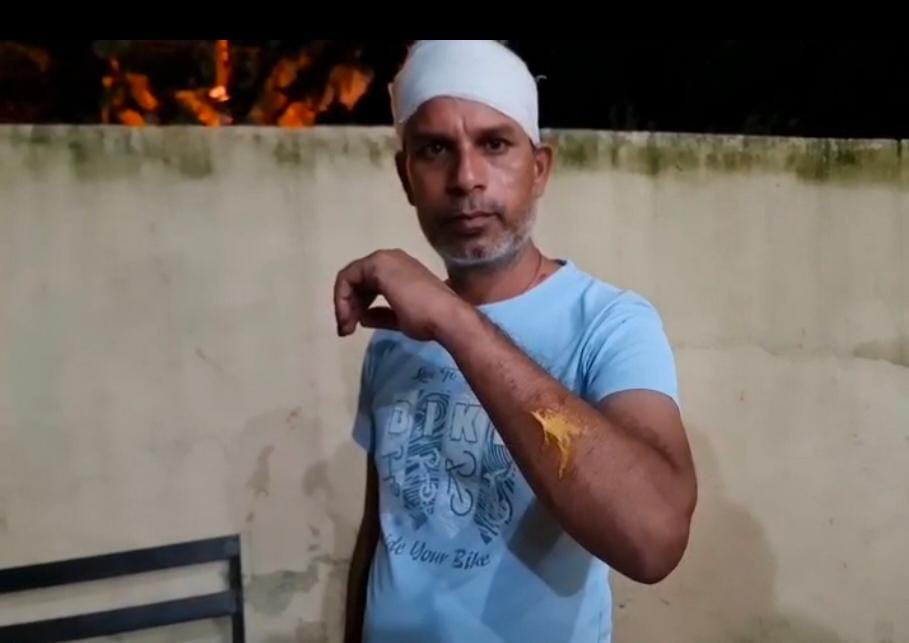 बिठाओ इसे गाड़ी पर मैने गाली देने से मना किया तो एक शख्स ने हाथ में पकड़ी किसी वस्तु से मेरे सिर पर हमला कर मार दिया।