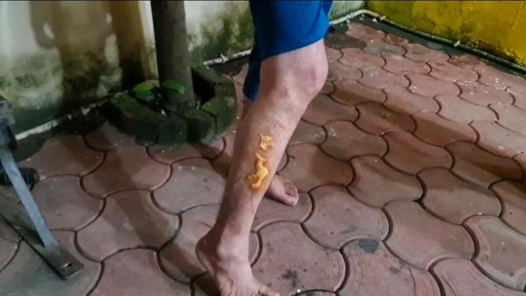 जिससे सर से खून बहने लगा और दूसरे ने डण्डे से मारा जो मेरे दाहिने तरफ पसली पर मारा जिससे मुझे लंबी चोट आयी है चिल्लाचोट की आवाज सुनकल मोहल्ले वाले इकट्ठे हो गये जिन्हें देखकर वो दोनो लोग मोटर सायकल लेकर वहां से भाग गये मोहल्ले वाले ने पकडने का प्रयास भी किया पर व पकड में नहीं आये।